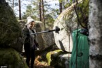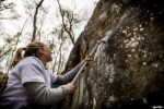Vers le milieu de l’après-midi, les bénévoles ont raccroché leur matériel de ramassage des déchets et se sont dirigés vers les blocs pour un nettoyage en règle. Le grès bellifontain nous est envié par la Terre entière pour son grain fin unique et sa variété de préhensions, en rondeurs ou en lames tranchantes ; il souffre malheureusement de la surfréquentation.