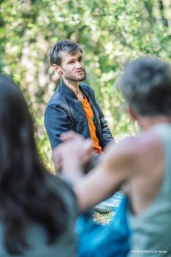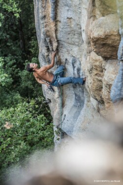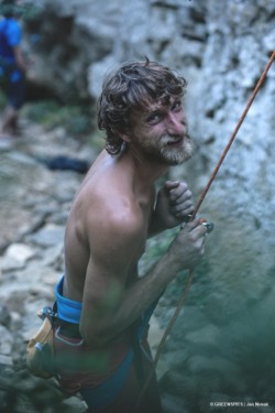 Antoine Le Ménestrel a pris la suite avec son « échauffement à l’horizontale », n’y voyez rien de sexuel encore une fois ! « tel un Folambule, je ne change pas le monde mais je change le regard sur le monde ». Antoine, grimpeur et poète, marque les corps et les esprits par son engagement pour l’amour du geste. Chacune de ses paroles et chacun de ses mouvements sont nourris d’esthétisme. Les plus curieux ont pu passer l’après-midi en tête à tête avec lui pour explorer des « jeux écologiques » dans les voies historiques d’Entrechaux. Un grand succès !