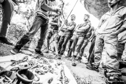 Benjamin Bouissou et Antoine Eydoux ont également donné de leur personne en animant avec Caroline Ciavaldini l’atelier sur les grandes voies. Dans la bonne humeur, tout fut passé en revue de «qu’est ce que je met dans mon sac avant de partir » à « la manip de relai dans des configurations difficiles ». Les questions et débats ont fleuri de chacun des participants, photosynthétisés sous un soleil éclatant.