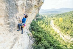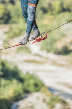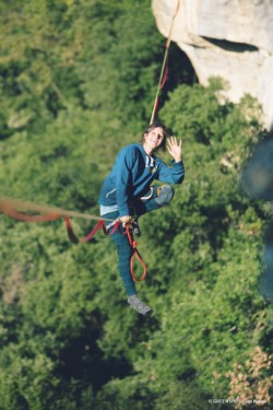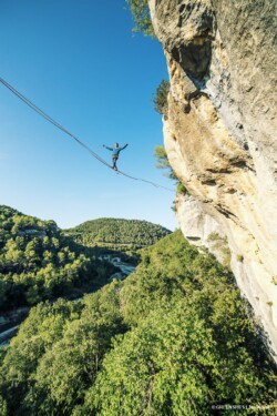 Une première highline voit le jour sur la falaise d’Entrechaux ! Mimi Guesdon et Nicolas Nastorg deux pointures de la slackline française ont travaillé de pied ferme la veille de l’évènement pour installer une sangle de 65m juste au dessus des voies phares du secteur. Il suffisait de lever la tête pour voir un balai de pas maîtrisés et de bras libérés. Mathieu Pertus et Louisa Avenas ont représenté l’association Ardèche Slackline avec qui nous souhaitons travailler dans l’avenir … encore des histoires de spits !
