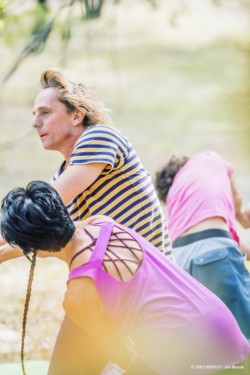 Les lève-tôt (tout est relatif…) ont pu participer à une séance de « restorative yoga » avec en chef d’orchestre Mme Valérie Tribout, maître en la matière. Pour avoir testé, on peut vous dire que Valérie transmet à merveille les ondes positives qui l’habitent durant ses séances. On en ressort généralement fatigués mais contents, comme après une bonne partie de jambes en l’air…